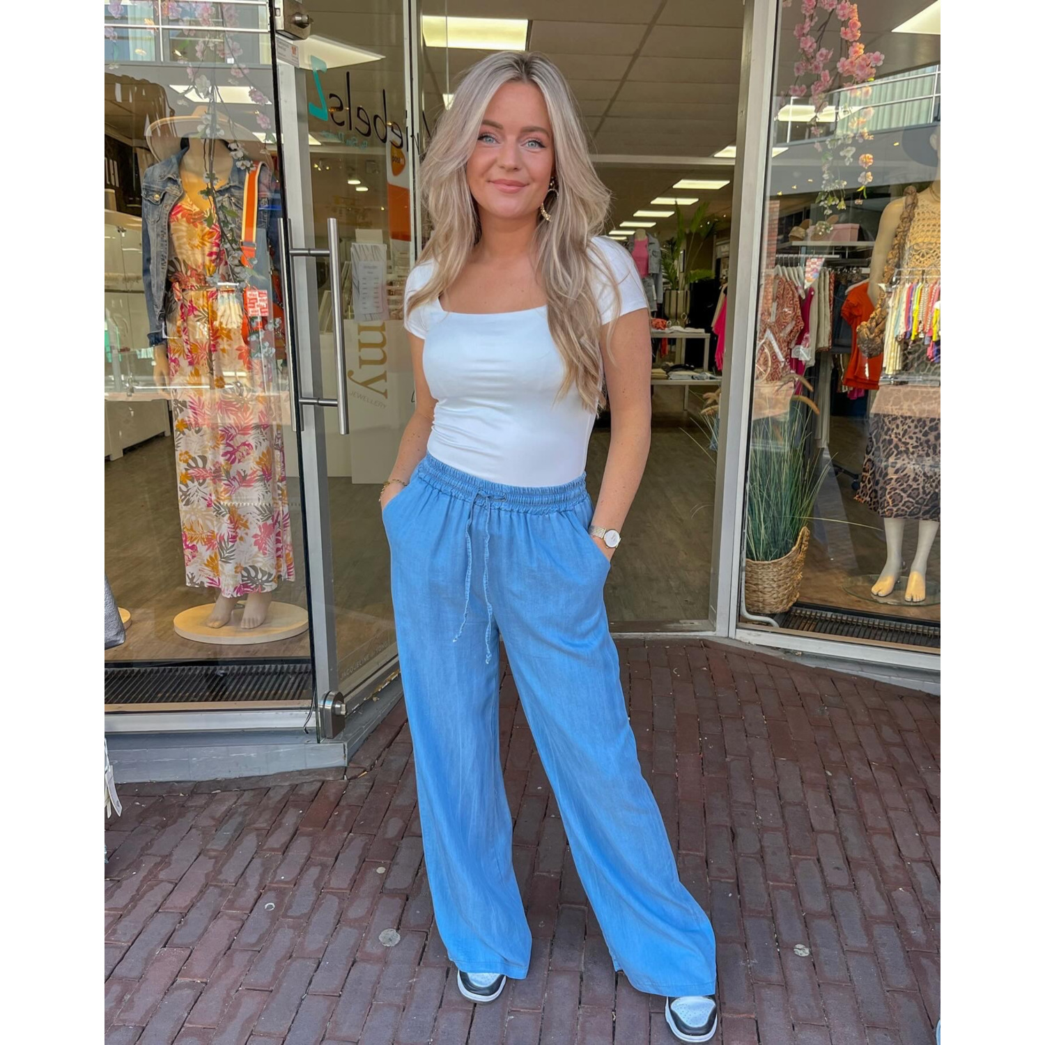 Broek met elastieken tailleband Dunne denim kwaliteit