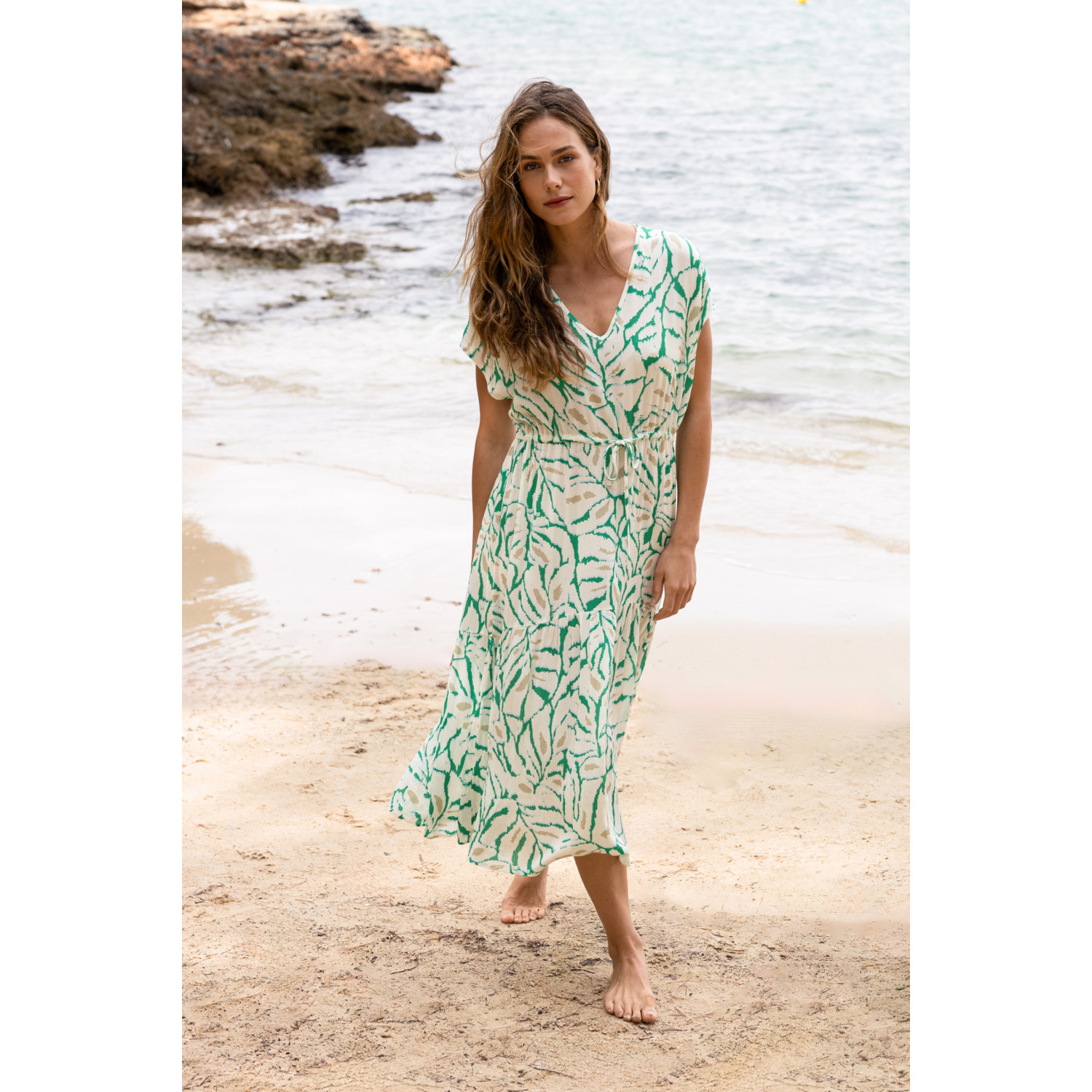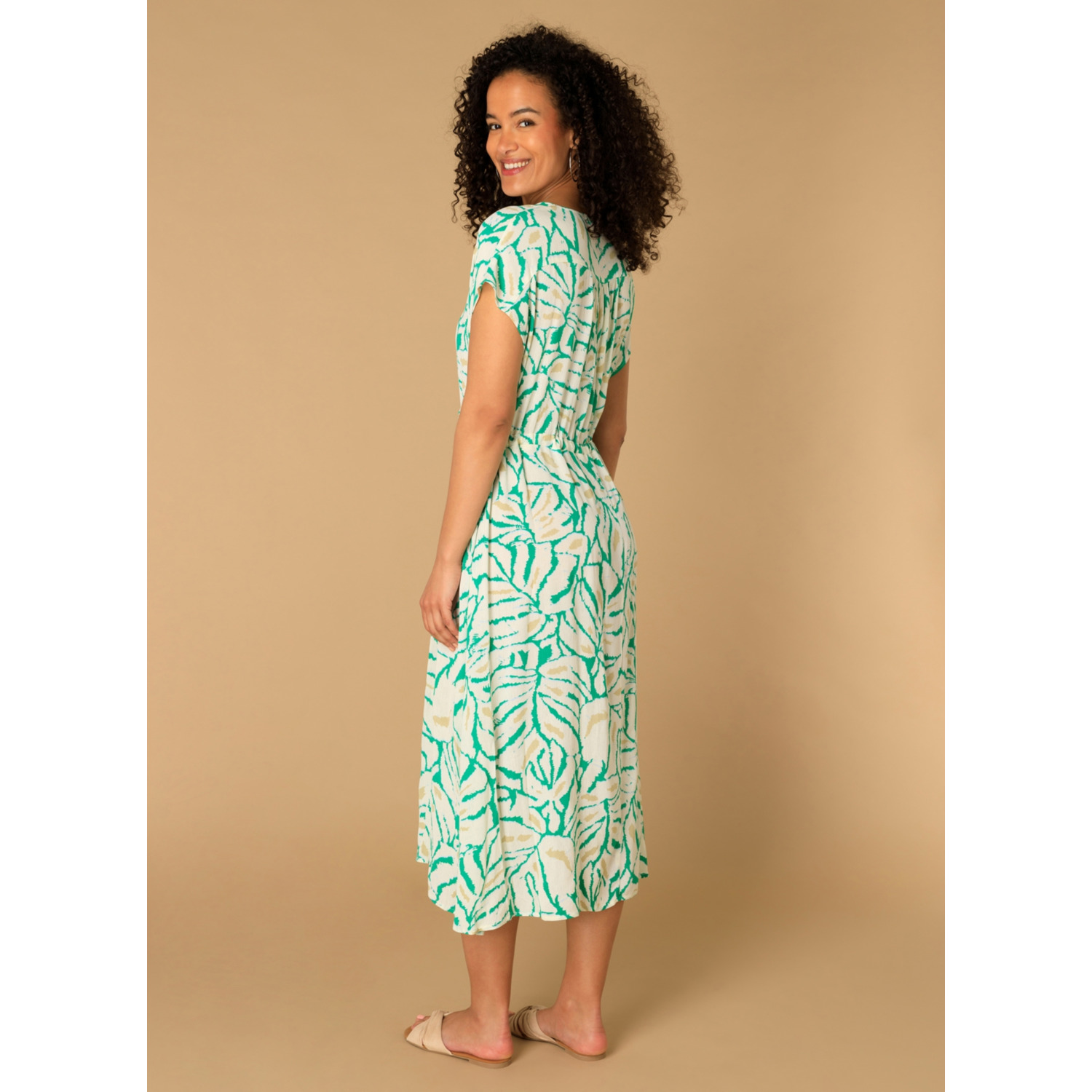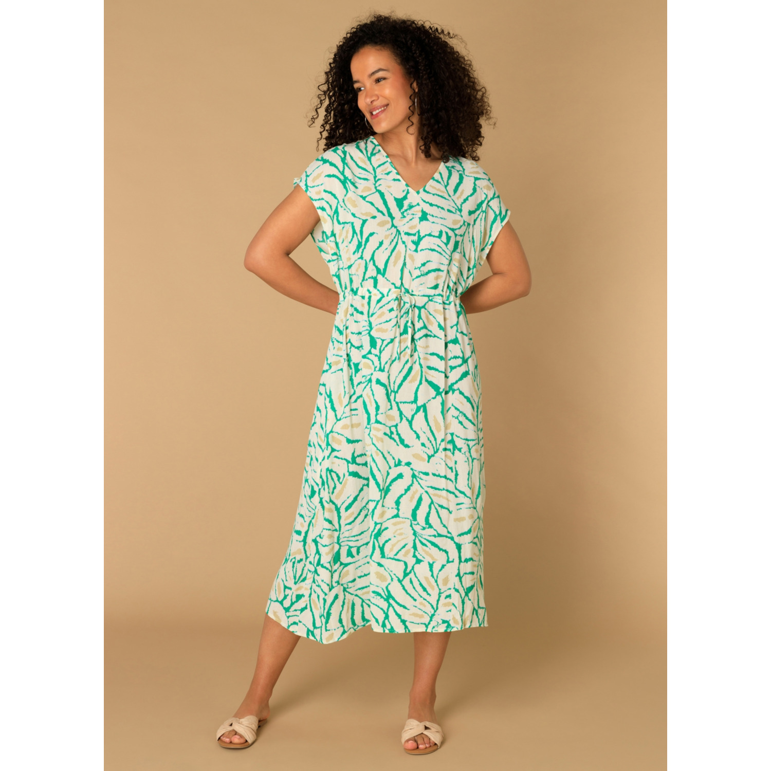 Maxi jurk met print V-hals Bevat centuur
