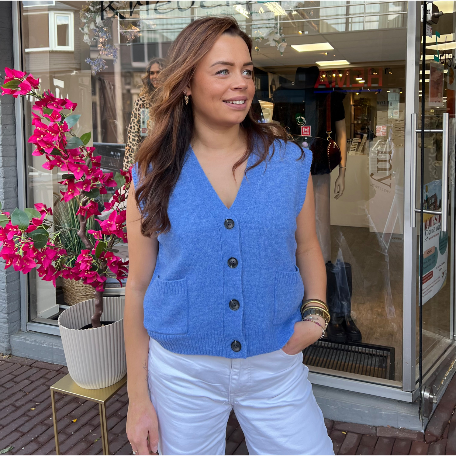 Spencer met knopen Steekzakken aan de voorkant